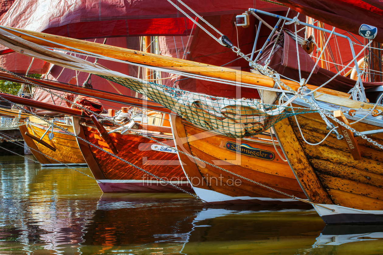 Vier alte Zeesboote im Ostseehafen