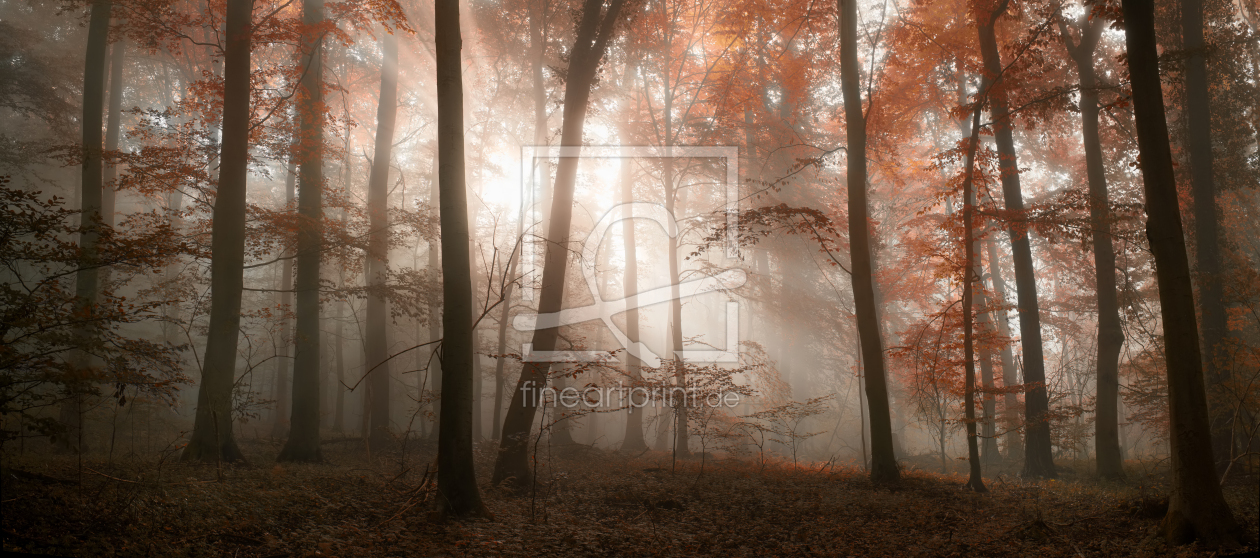 Glühendes Sonnenlicht in nebligen Waldlandschaft