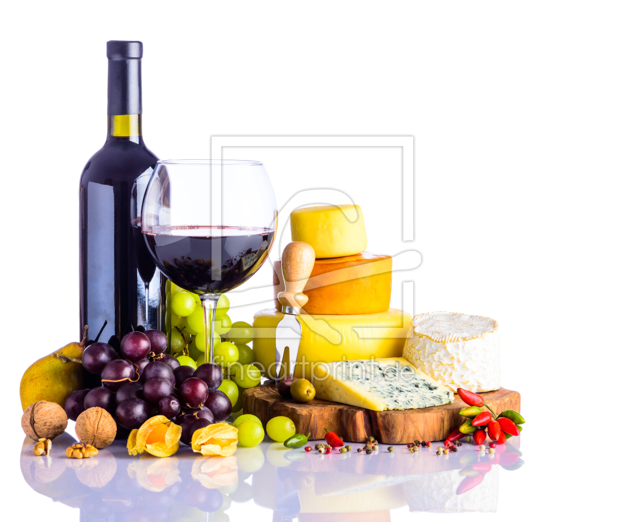 Bild-Nr: 11919521 Stillleben Rotwein mit Schimmelkäse und Weintraube Erstellt von: xfotostudio