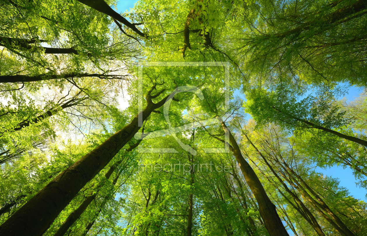 Blätterdach eines Buchenwaldes im leuchtenden Grün
