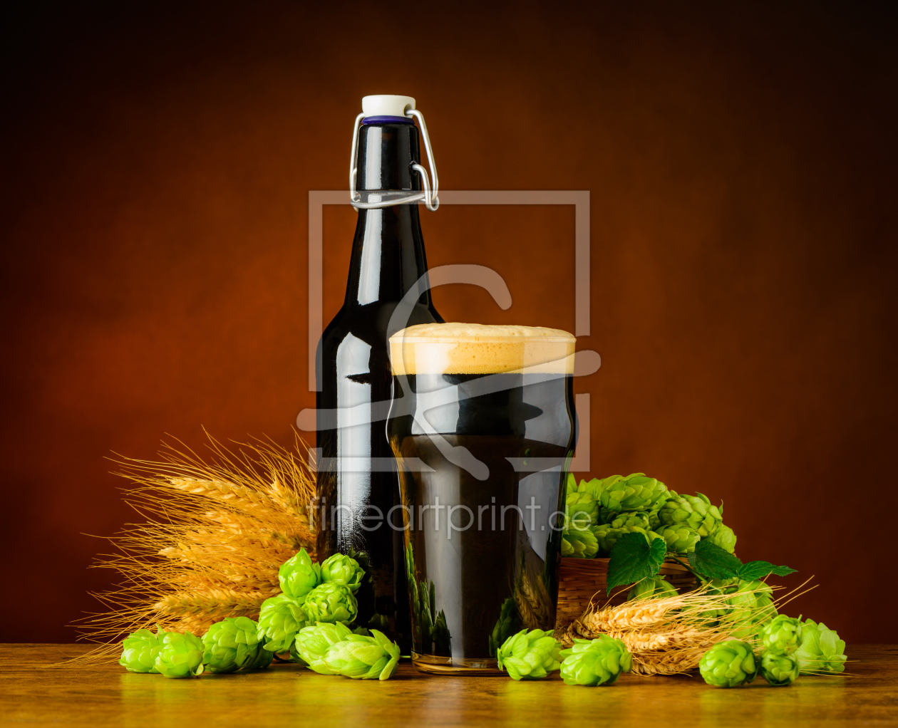Dunkeles Bier mit Hopfen und Weizen