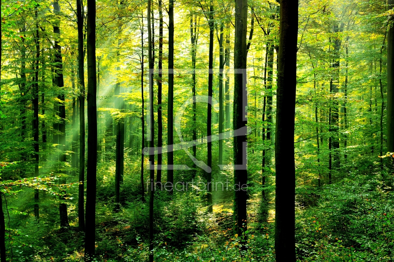 Frühlingswald mit Sonnenstrahlen