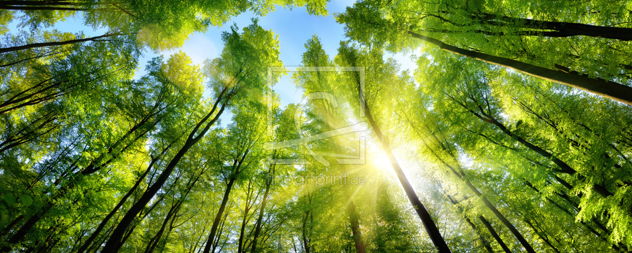 Blätterdach eines Buchenwaldes im leuchtende...