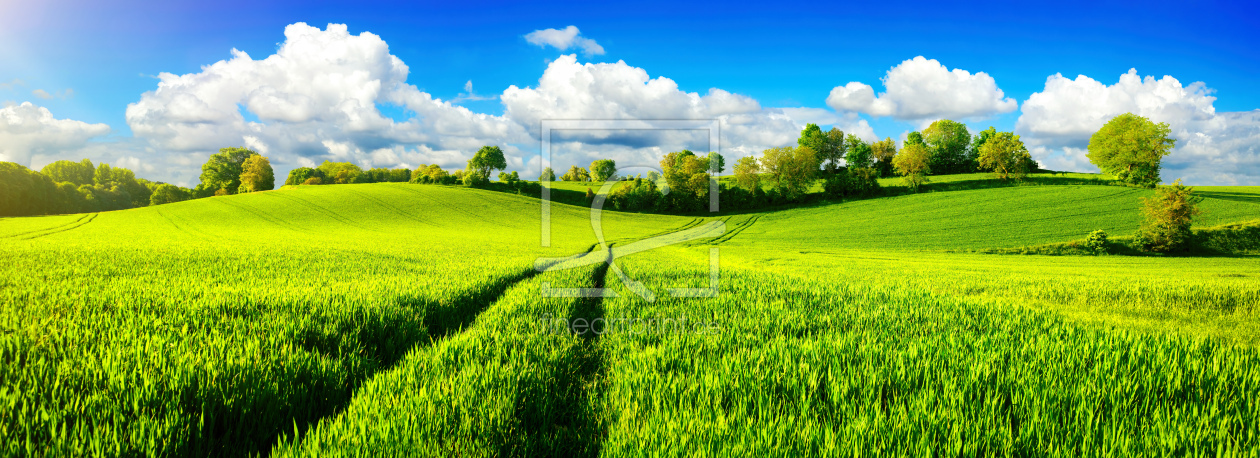 Panorama mit weiten Wiesen und blauem Himmel