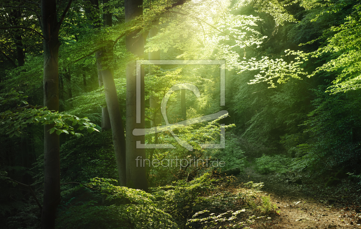 Malerische Waldszene mit magischen Lichtstra...