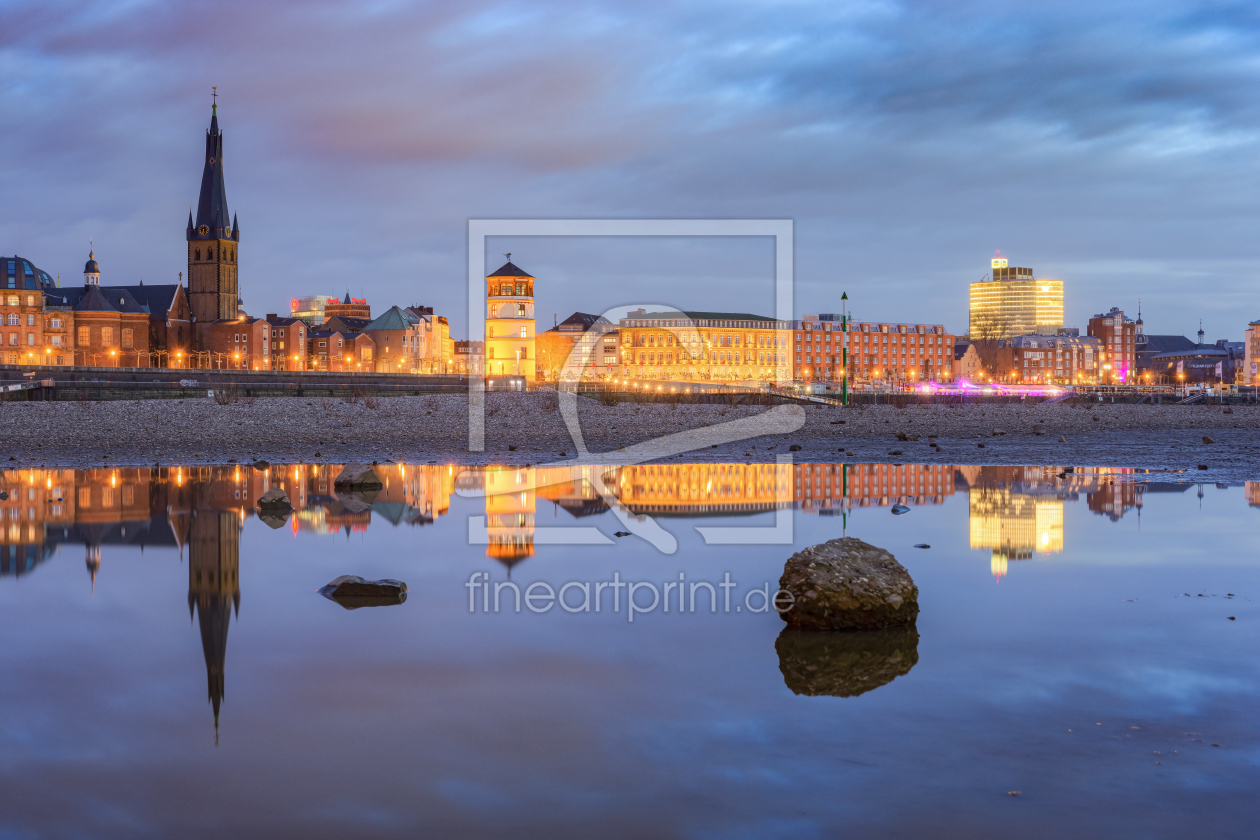 Düsseldorf Skyline mit Schiff bei Sonnenunterg...