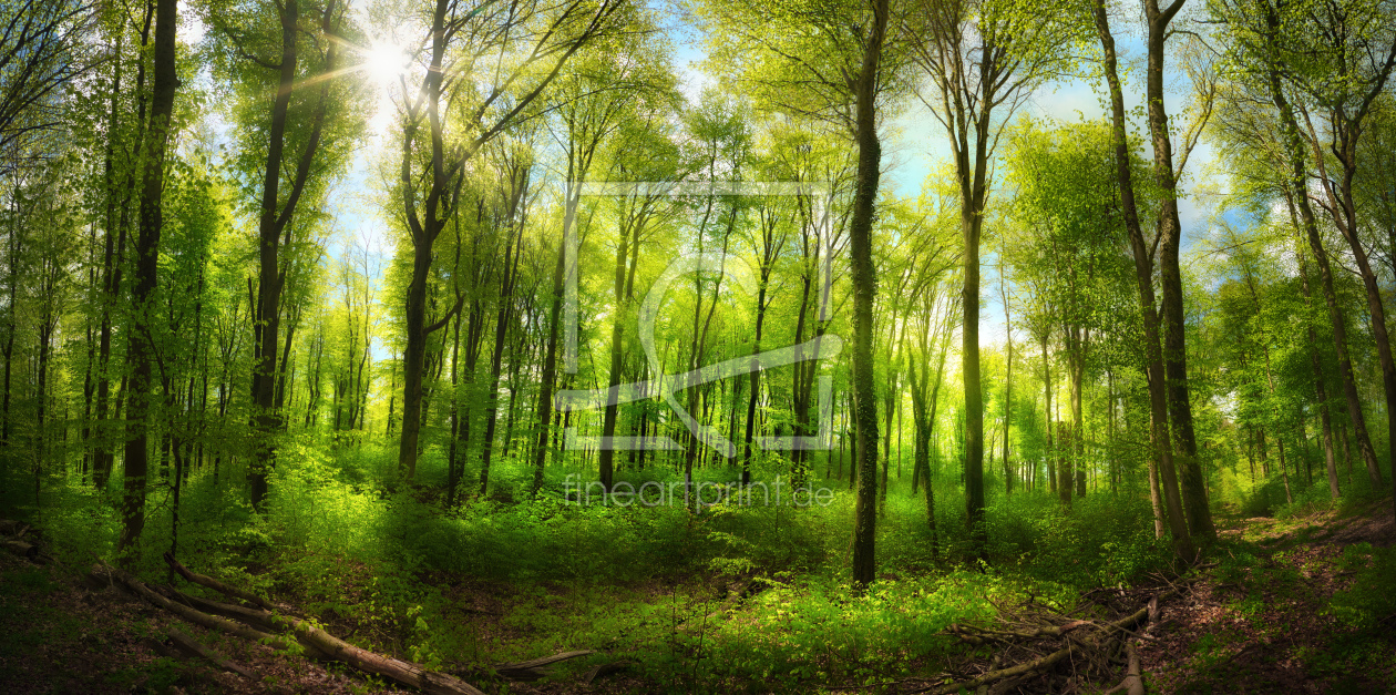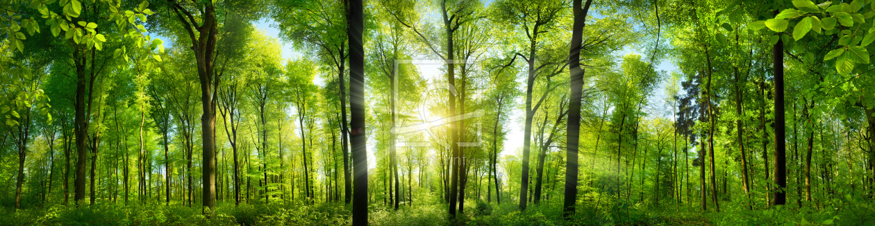 Extra breites Waldpanorama mit Sonnenstrahle...