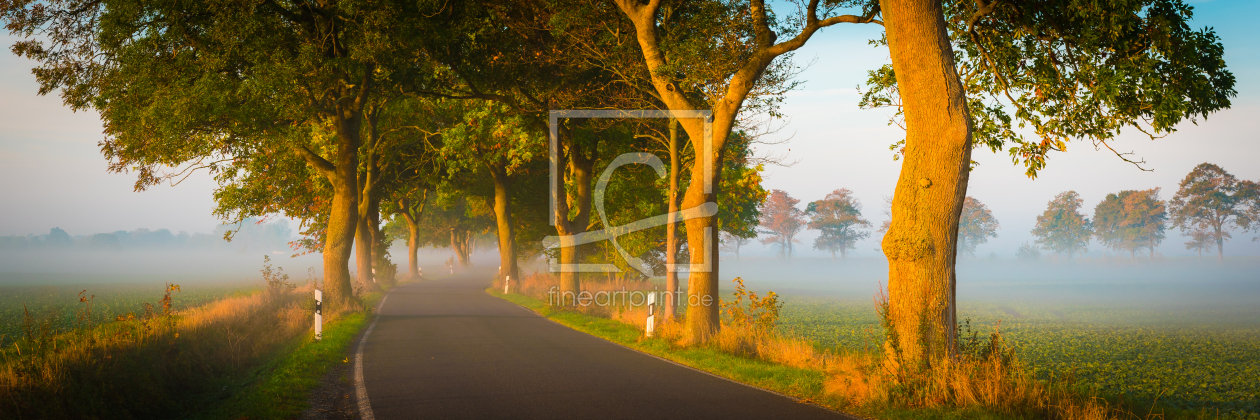 Allee auf Insel Rügen im Nebel