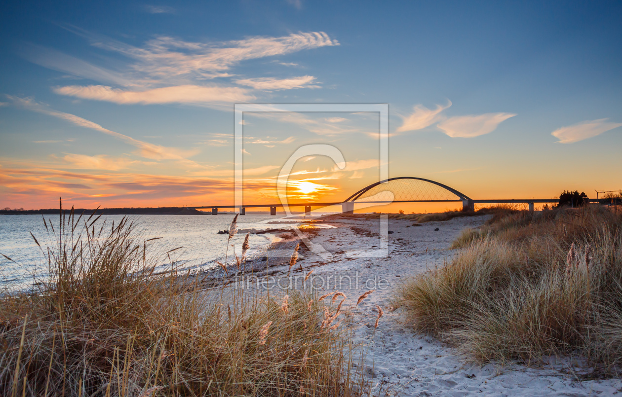 Fehmarnsundbrücke im goldenen Sonnenuntergang