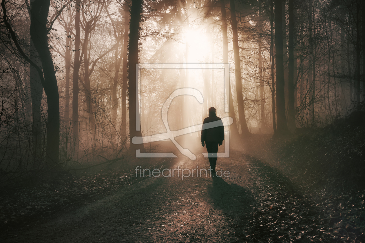 Goldenes Sonnenlicht bei Nebel im Redwood-W...