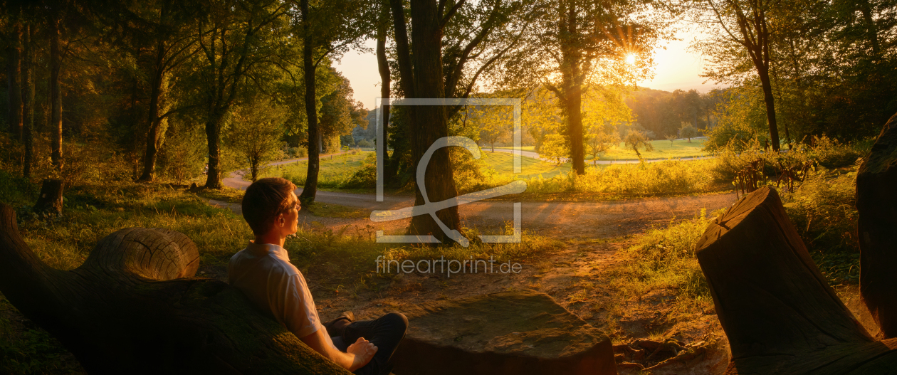 Mann auf einer Bank genießt den Sonnenuntergang