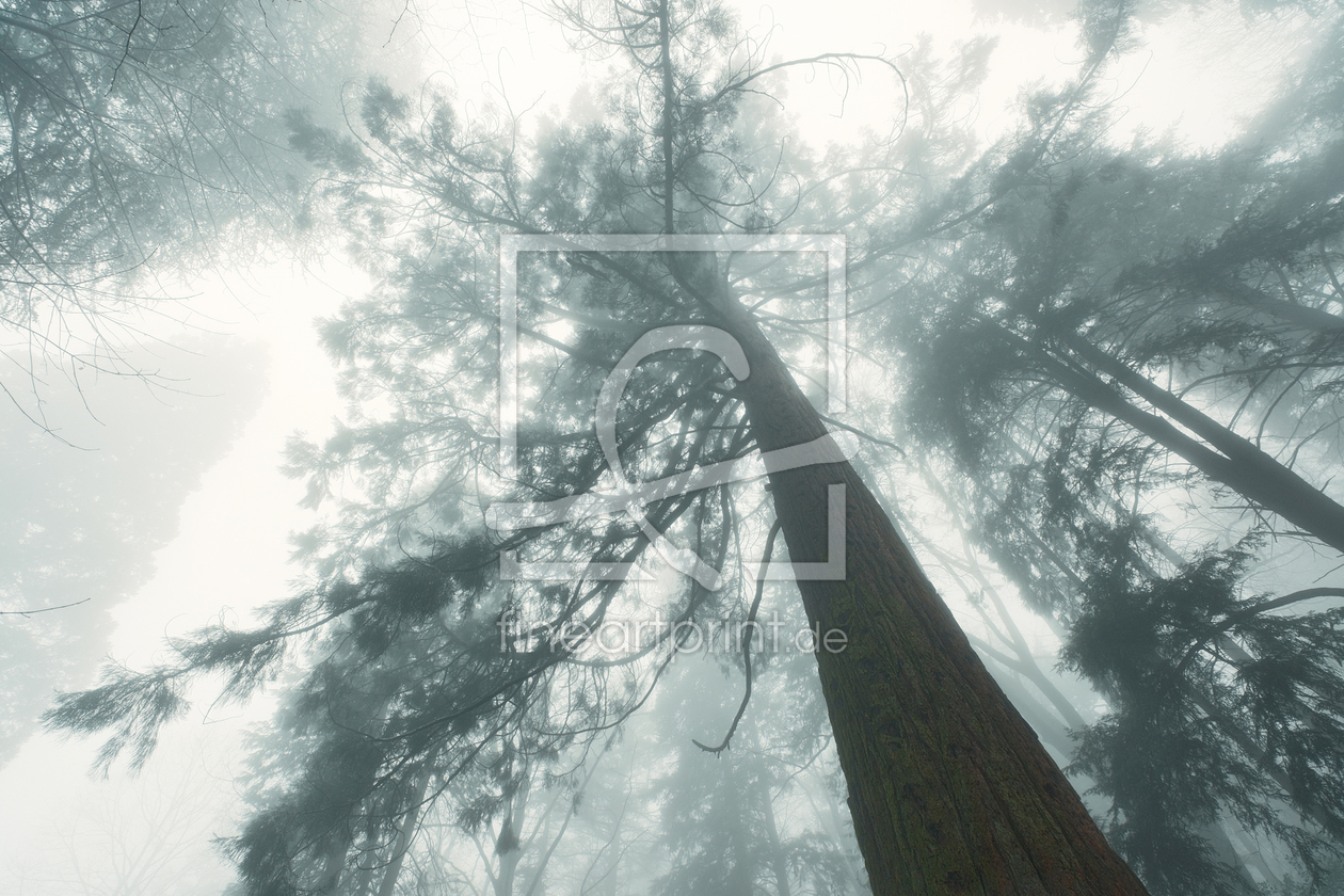 Redwood Baum im Nebel bei kühlen Winterlicht