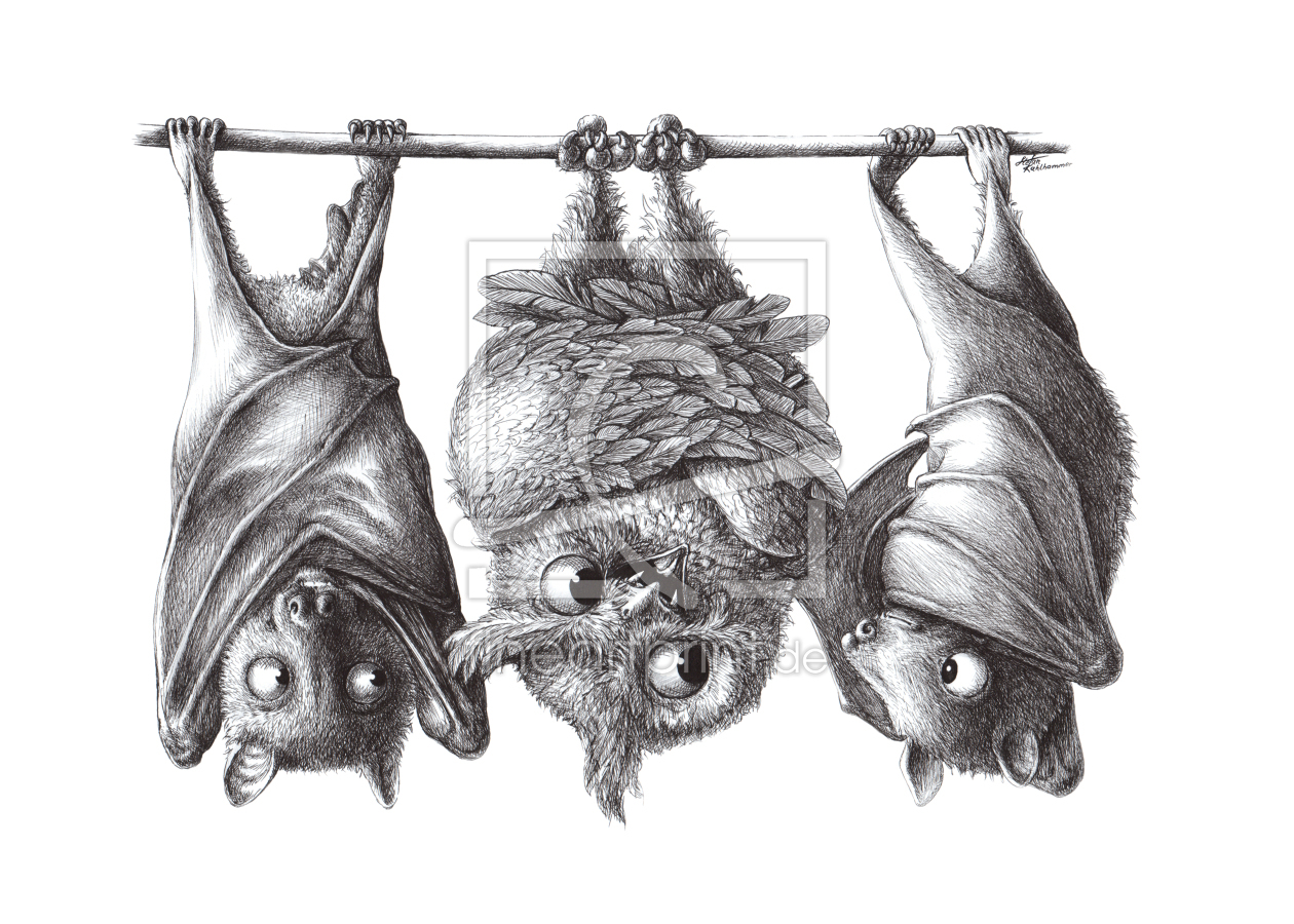 Seltene Vampir-Eule mit zwei Flughunden