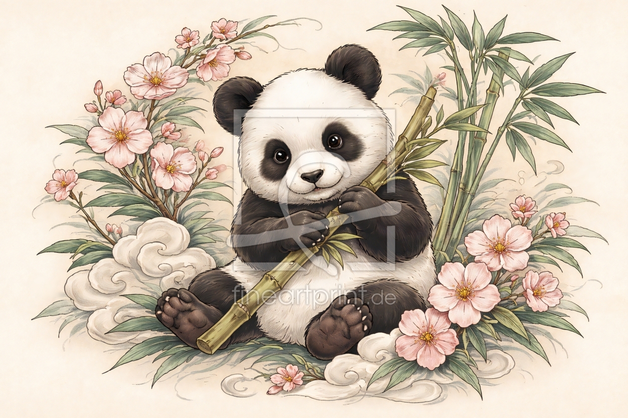 Sanfter Panda unter Blüten KI