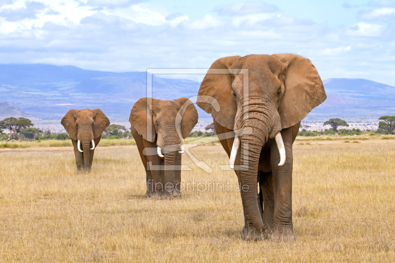Bild-Nr.: 10601608 Drei Elefanten am Fuß des Kilimanjaro erstellt von Safarifotografie