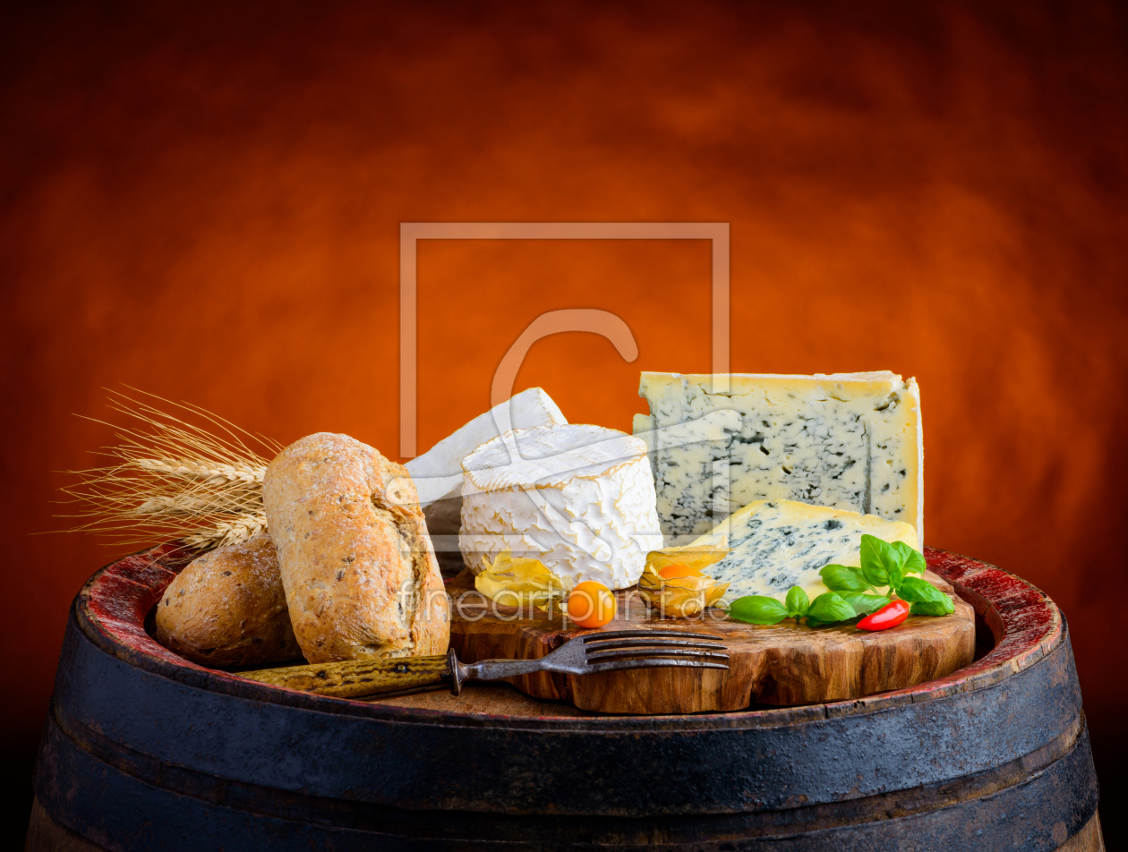 Stillleben mit Käse und Brot