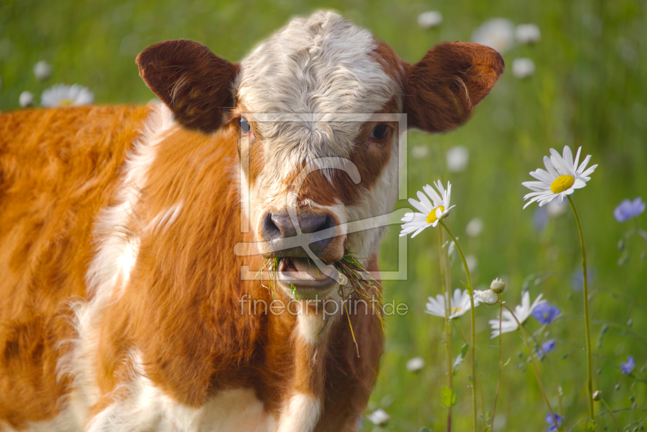 Junge Kuh auf einer Blumenwiese