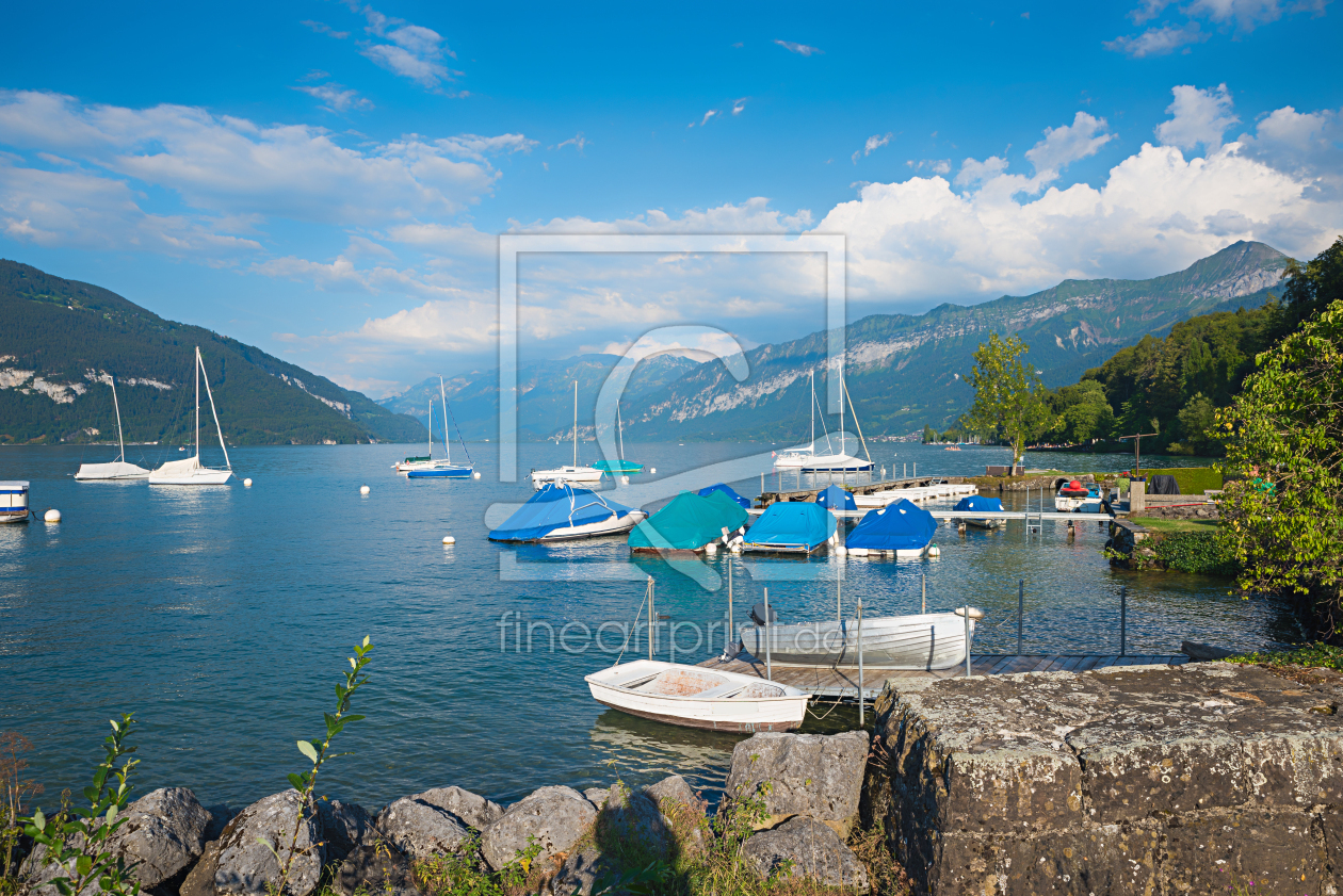 Segelboote in Faulensee - Blick zum Niederhorn