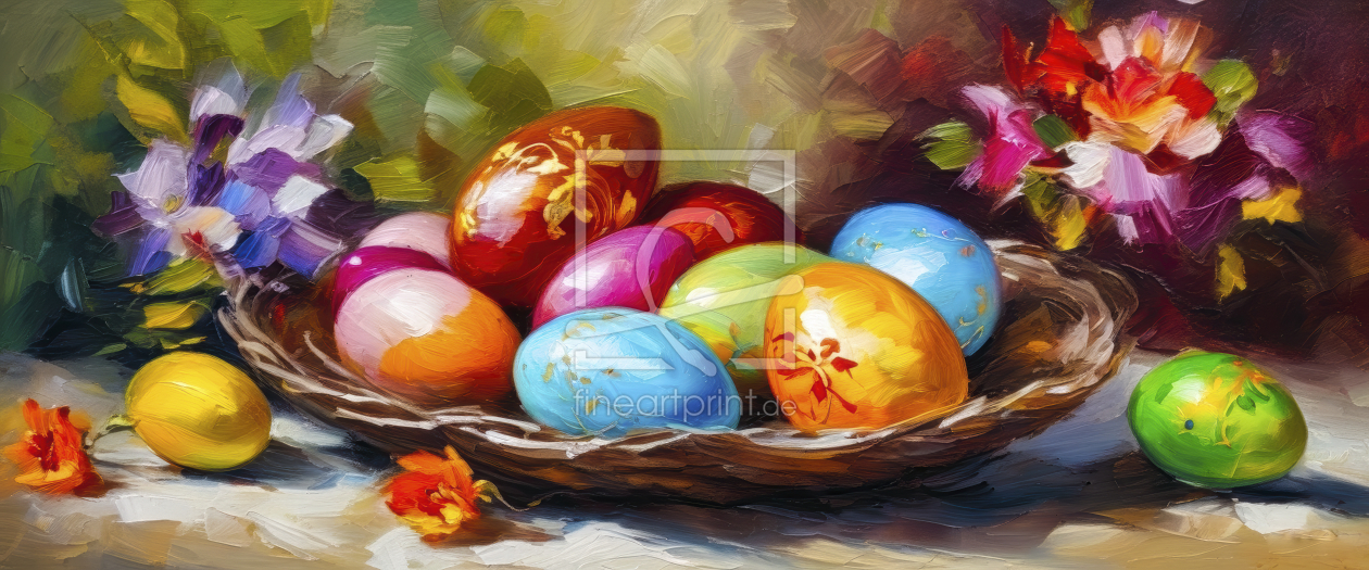 Bild-Nr.: 12884018 Bunte Ostereier im Korb KI erstellt von XYRIUS